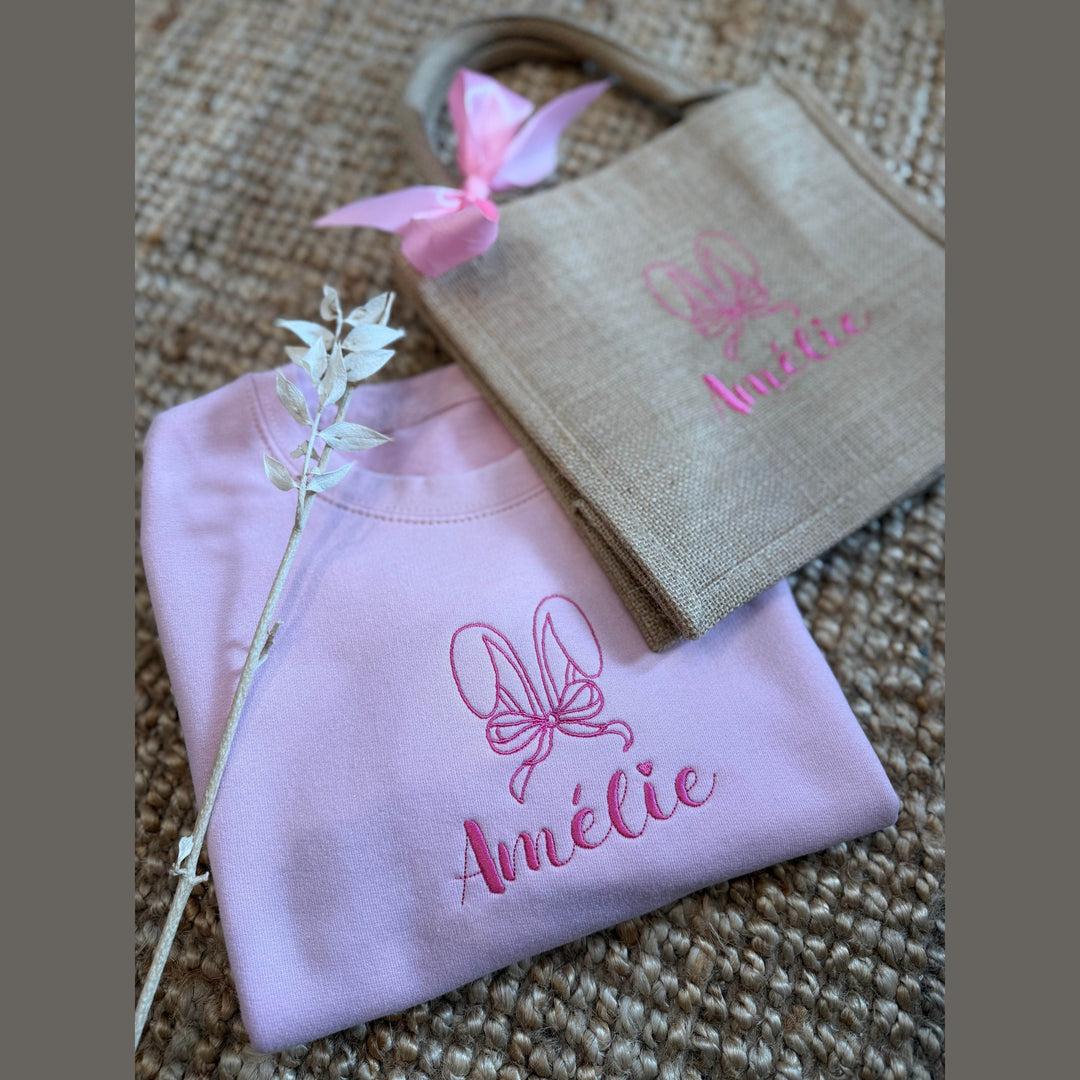 Ontdek de magie van geborduurde sweaters voor kinderen voor Pasen met mijn exclusief konijn.