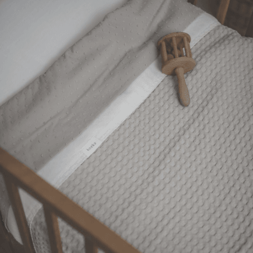 Gepersonaliseerde wiegdekentje of ledikantdekentje met borduur van Koeka.