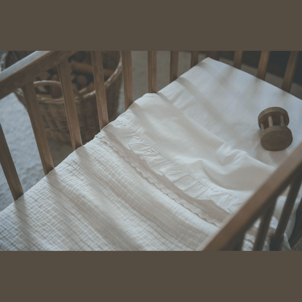 Gepersonaliseerde wiegdekentje of ledikantdekentje met borduur van Koeka.