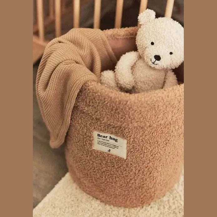 Opbergmand in teddy, gepersonaliseerd met naam.