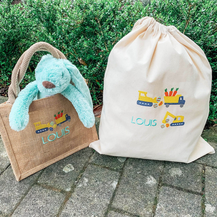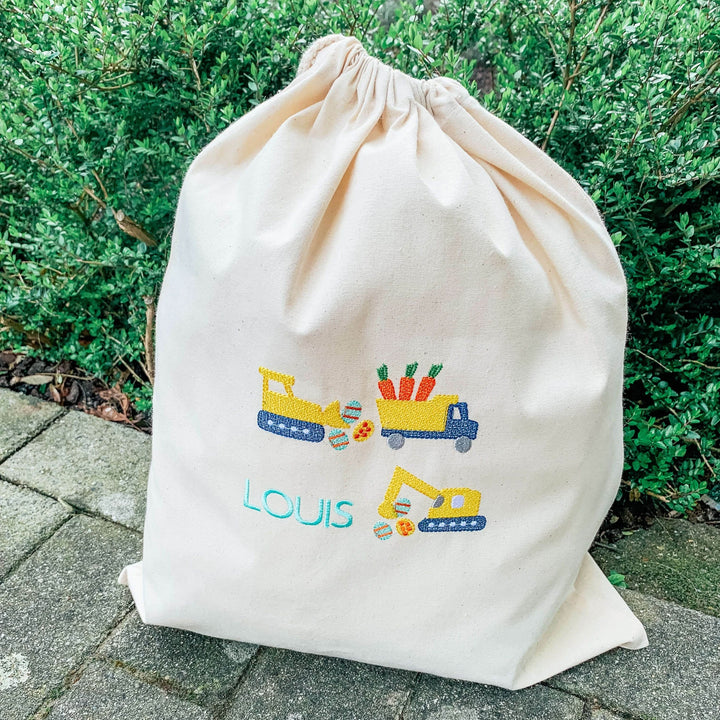 Paasbox voor jongens - Geborduurd - Pasen - Tractor & auto's