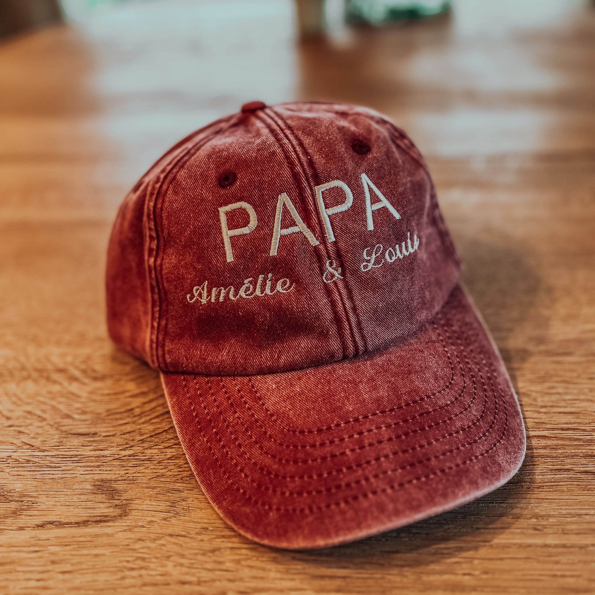 Voeg een persoonlijk tintje toe door de namen van je kindjes (maximaal 3 namen) onder 'Papa, opi, peter' te laten borduren in een romantisch lettertype.