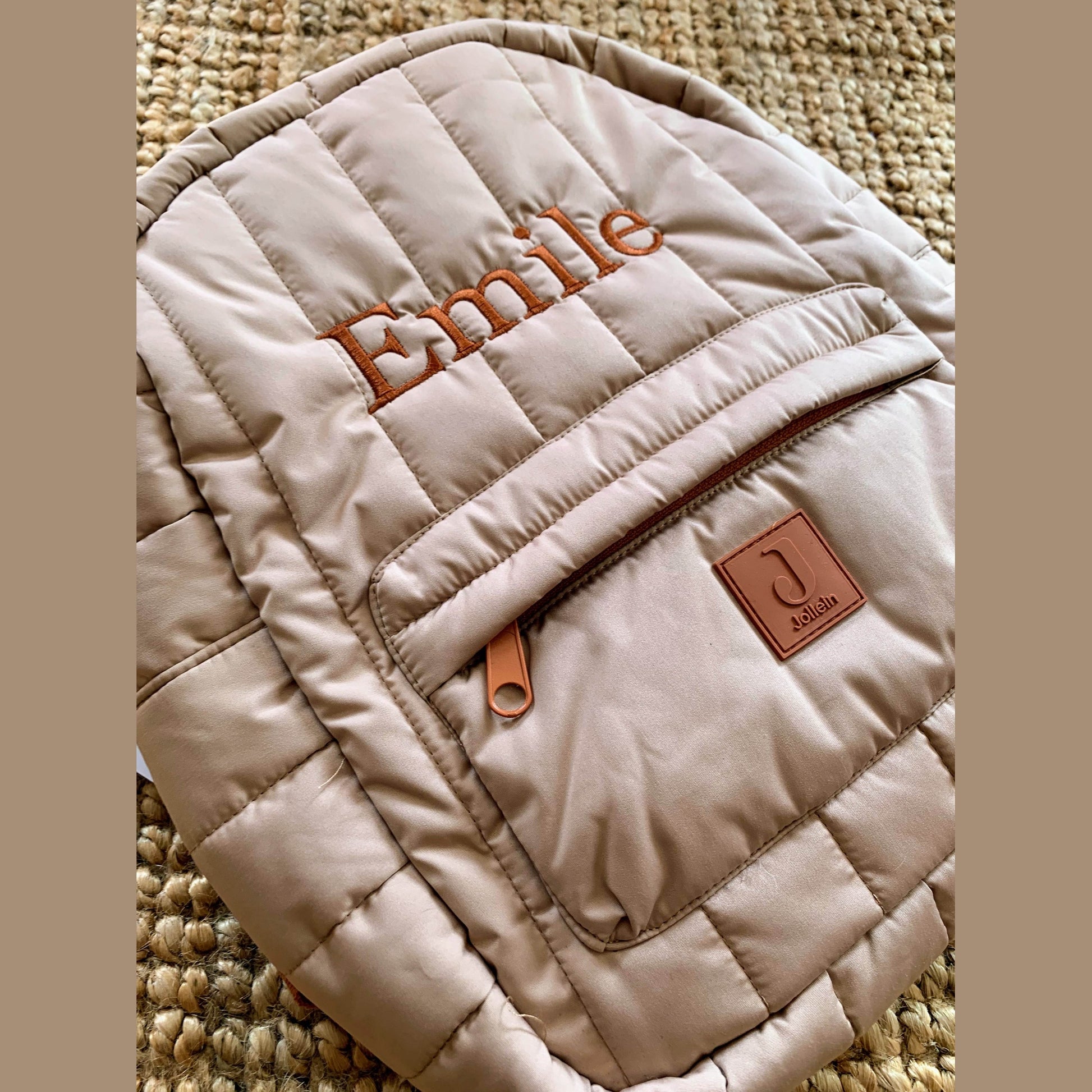 Jollein Rugzak Puffed Geborduurd met naam - Biscuit