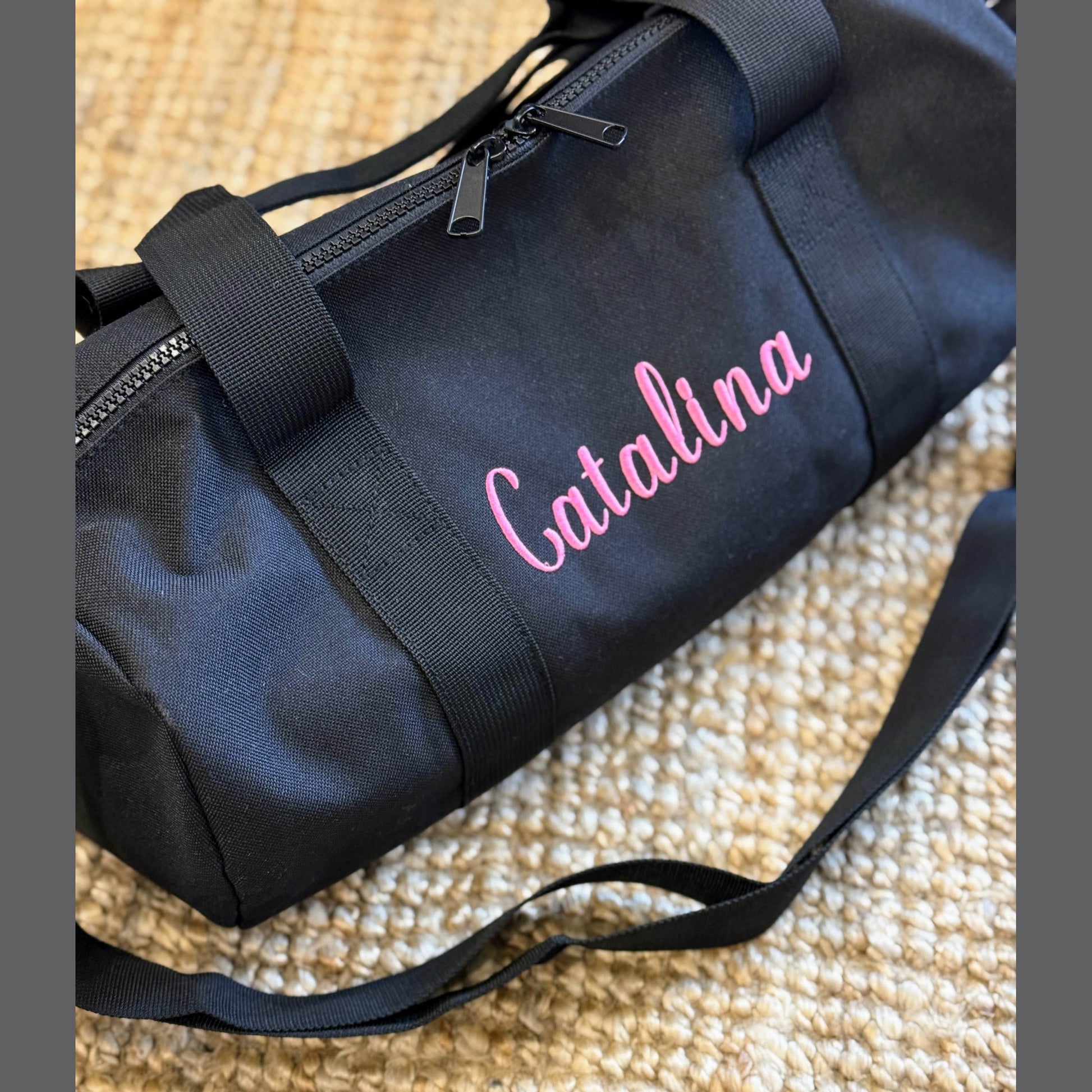 Laat de naam van je kindje borduren in het lettertype en de kleur van jouw keuze en maak van deze sporttas iets écht bijzonders.